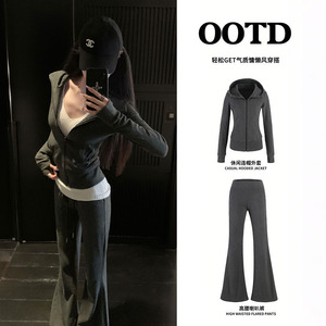 巨好看的早秋外套女款秋韩系修身正肩淡人高知老钱风穿搭运动套装