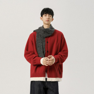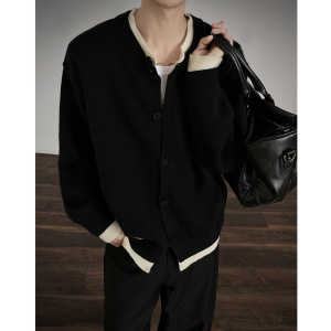 秋新款男士重磅700克保暖开衫针织毛衣青少年宽松设计感休闲上衣