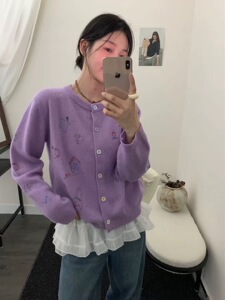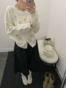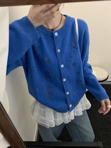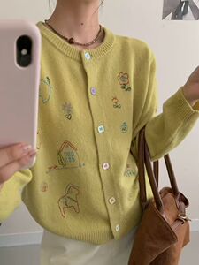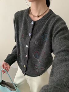 欧洲站2025秋季新款圆领重工刺绣彩排扣时尚减龄羊毛针织衫上衣女