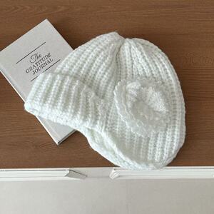 小众甜美款-韩国秋冬保暖针织花朵护耳毛线帽包头纯色简约可爱帽