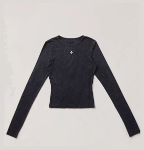 SMFK暴风褪色蚕丝运动长袖上衣 经典修身超长T恤秋新品