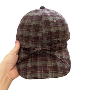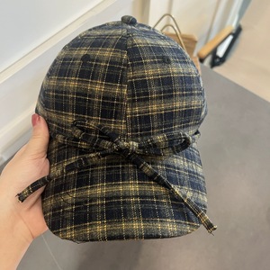 学院风少女感磨毛格纹蝴蝶结绑带棒球帽秋冬休闲百搭显脸小鸭舌帽