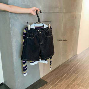 WGWE7437广州十三行女装2025早秋装新款小个子高腰直筒裤牛仔短裤