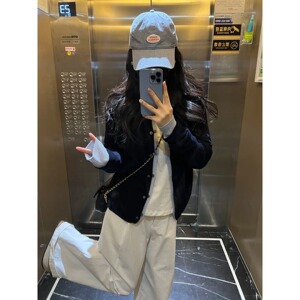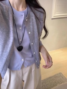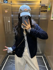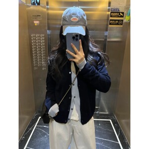 韩系百搭单排扣外套女春秋季小众撞色假两件上衣复古针织毛衣开衫