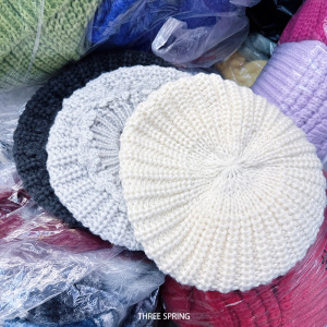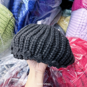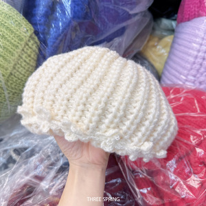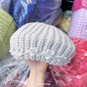 批发韩国2025年早秋新款花朵条纹针织贝雷帽保暖护耳显脸小画家帽