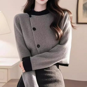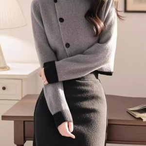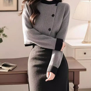 韩版气质御姐风灰色毛衣开衫简约中长款高腰半身裙秋冬款通勤套装