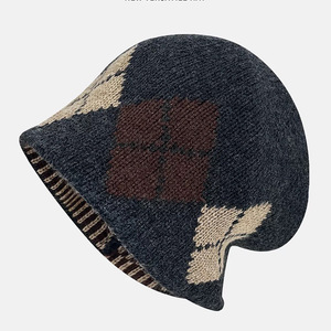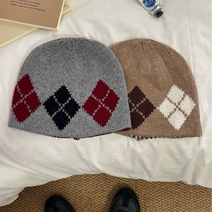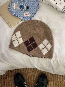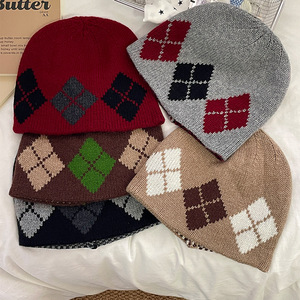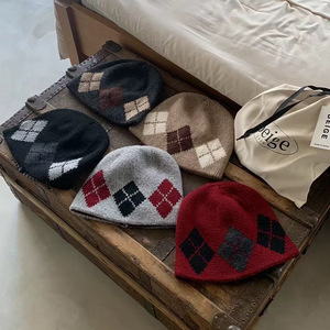 韩国ins菱格方形减龄洋气针织毛线帽秋冬保暖护耳帽时髦包头冷帽