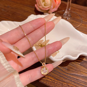 轻奢小众高级感猫眼石吊坠项链女精致微镶锆石钛钢锁骨链网红颈链