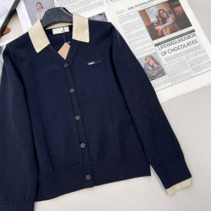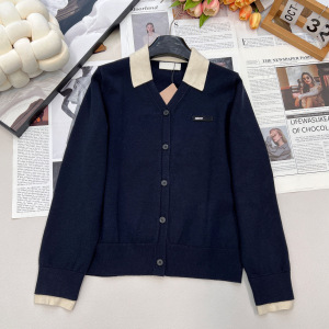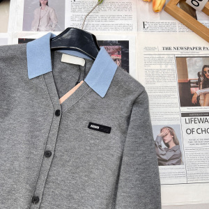 2025早秋新款南油miu慵懒风百搭拼色刺绣字母翻领刺绣针织开衫女