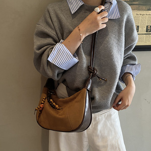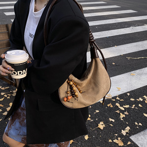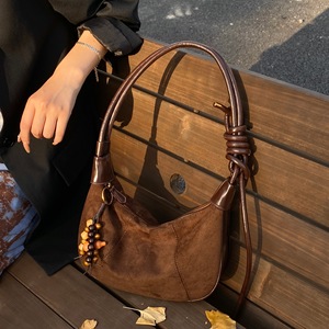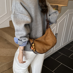 麂皮绒包包女大容量2025新款秋冬季磨砂复古斜挎包休闲通勤饺子包