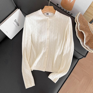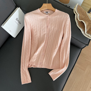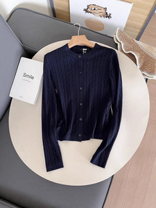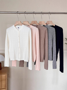 好品质!小优!时尚气质绞花毛衣弹力显瘦圆领针织开衫上衣女
