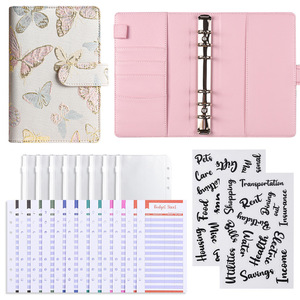 跨境专供布料蝴蝶马卡龙手账本A6活页夹拉链袋现金预算记账本批发