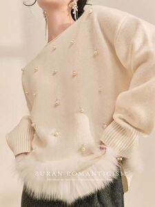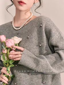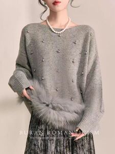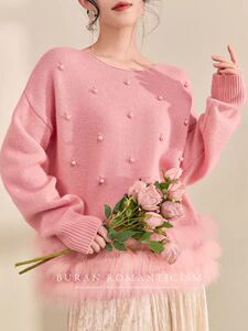 毛衣女款2025新款冬季圆领高级感轻奢重工钉珠针织上衣