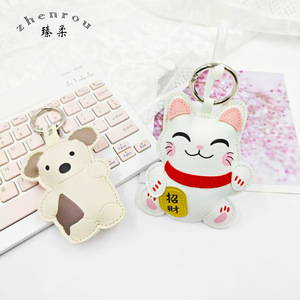 爆款皮革萌宠招财猫PU皮哈巴狗diy手工卡通包包挂饰钥匙扣挂件批