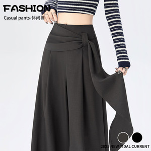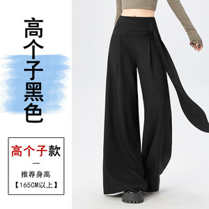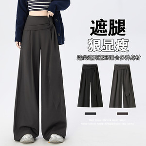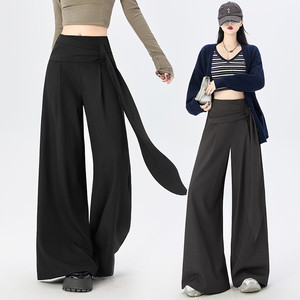 现货西装阔腿裤女2025秋冬设计感绑带高腰垂感直筒宽松休闲拖地裤