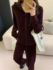 桑坡新款露露三代防风加厚款绵羊毛套装女保暖显瘦连帽运动两件套