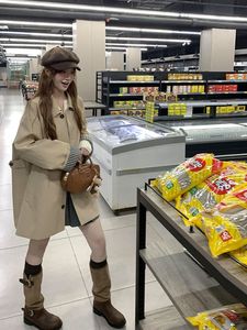 格子风衣外套女2025春新款中长款高级感小个子英伦风休闲大衣外套
