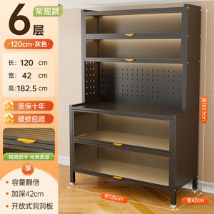 厨房岩板餐边柜多功能置物架家用落地多层收纳柜微波炉钢制储物柜