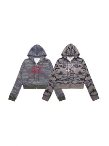 韩国小众潮牌aeae短款卫衣女辣妹修身显瘦百搭长袖迷彩外套秋冬款