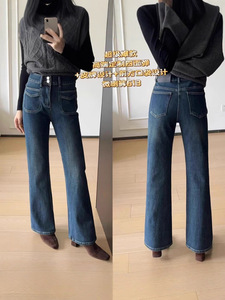 重磅气质腿精微喇裤女秋季高货复古时髦显瘦修身弹力喇叭牛仔长裤