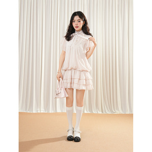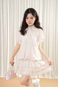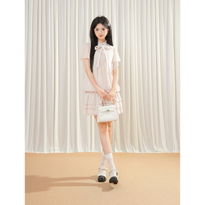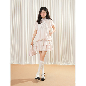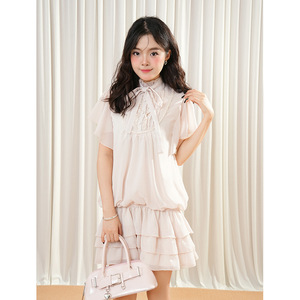 古着vintage荷叶边日系仙女千金风连衣裙夏新款高级气质蛋糕短裙