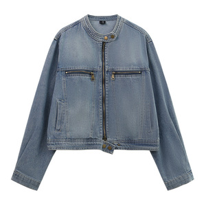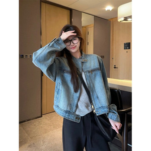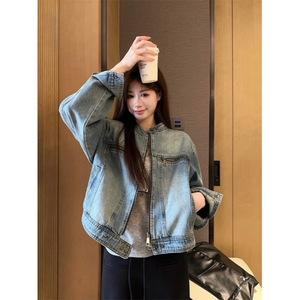 机车酷飒牛仔外套女夏季2025新款宽松显瘦时尚水洗休闲拉链上衣潮