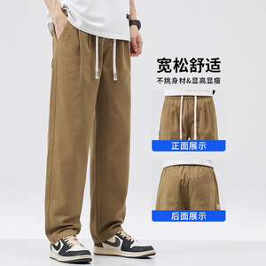 美式纯棉工装裤男款宽松直筒2025春秋季新款男士阔腿休闲长裤子潮