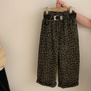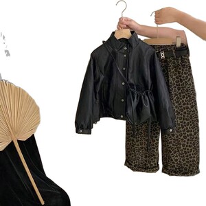 女童潮酷皮夹克外套秋季套装2025款韩版中大童百搭时尚豹纹休闲裤