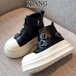 真皮马丁靴女款松糕厚底增高小个子短靴2025秋冬新款休闲高帮鞋女