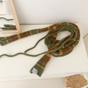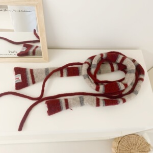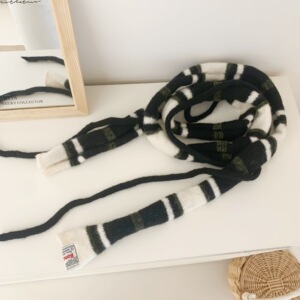 韩系小众设计条纹细窄长围巾女秋冬季时髦百搭保暖装饰护颈围脖潮