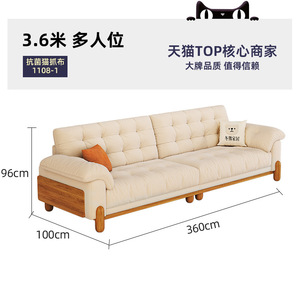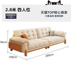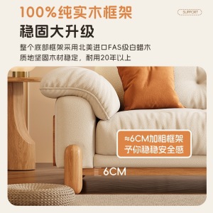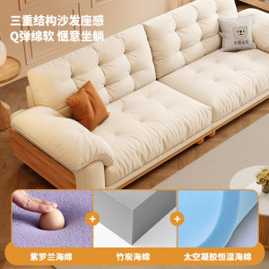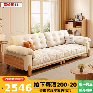 冬熊 北欧原木风云朵沙发日式直排可拆洗猫抓布客厅布艺实木沙发