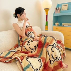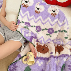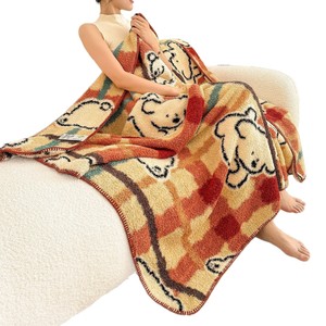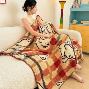 ins美拉德风格毛毯A类半边绒线头狗狗卡通沙发盖毯办公室午睡毯子