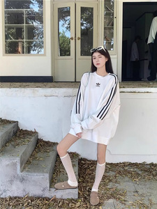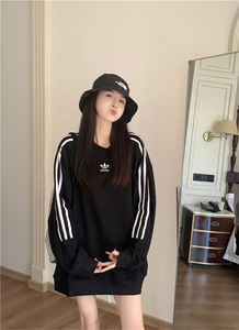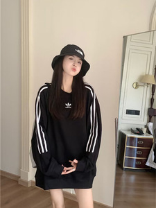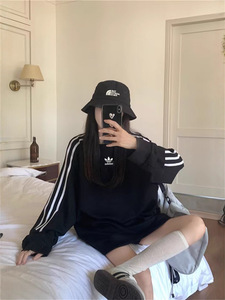 三叶草纯棉长袖卫衣男女春秋季上衣情侣三条杠休闲宽松套头打底衫