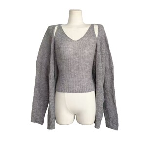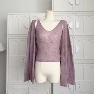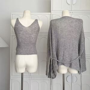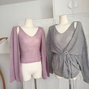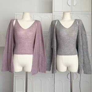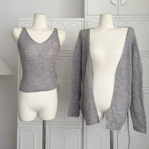 温柔慵懒松弛系带开衫/吊带羊毛时尚套装两件套2025秋季新款