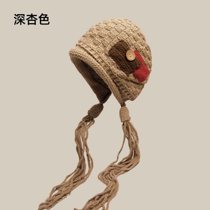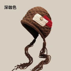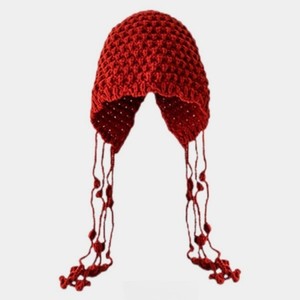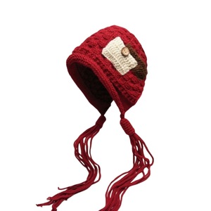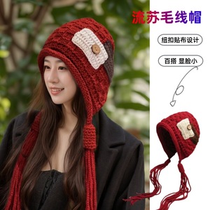 秋冬帽子女民族风复古红色包头帽显脸小时尚保暖针织帽流苏毛线帽