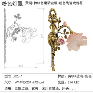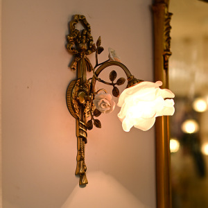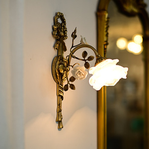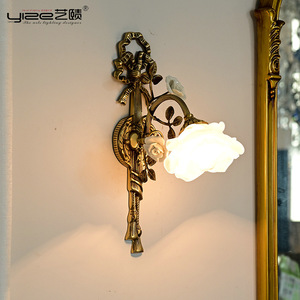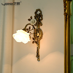 法式复古全铜壁灯中古风客厅复古田园花朵卧室床头过道背景墙壁灯