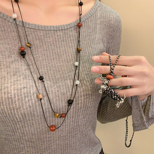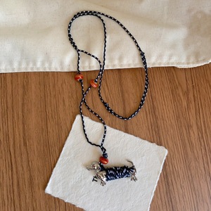 金属腊肠小狗编织绳吊坠项链女高级感精致长款毛衣链小众设计配饰