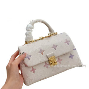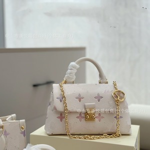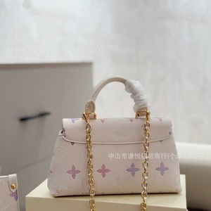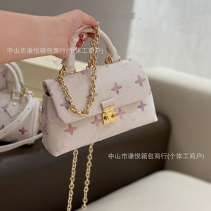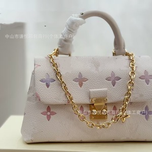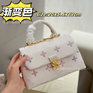 2025外贸锁头驴夏季新款渐变色花朵压花链条小方包高级感真皮斜挎