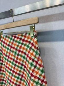 南油女装25秋季新款法式复古高腰修身显瘦彩色格纹A字半身裙女