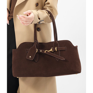 外贸 小众麂皮绒真皮包女复古大容量手提包简约通勤单肩包托特包
