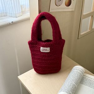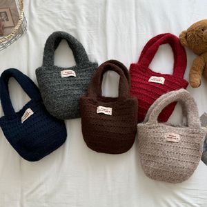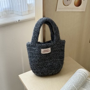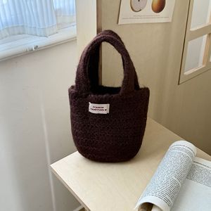 韩国新款针织手提包大容量秋冬复古百搭通勤手腕袋毛线编织小包包