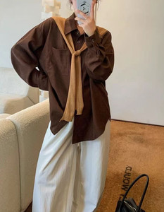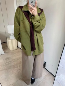 秋冬款复古灯芯绒衬衫搭配围巾厚实绒面质感软糯宽松藏肉显瘦上衣