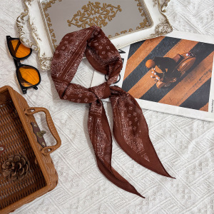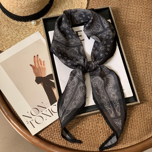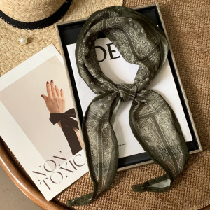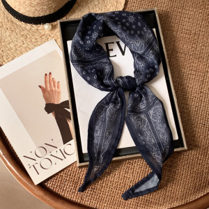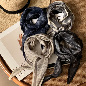 新款丝巾韩系复古四宫格腰果花菱形巾双面领巾围脖棉麻围巾小披肩