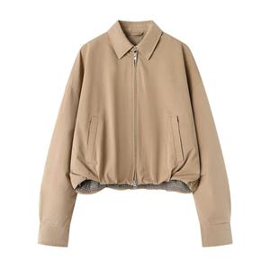 江*同款无标*2025早秋新品翻领拉链短款外套女宽松休闲百搭夹克