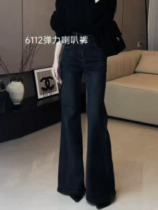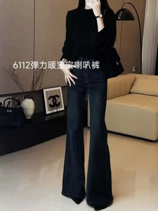 不退换6112高腰微喇裤显瘦加厚牛仔裤女