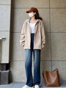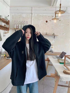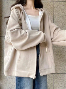 新款超显白奶茶色拉链开衫卫衣女加绒加厚宽松超火ins潮连帽外套
