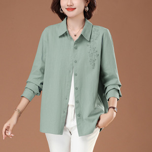 纯棉长袖衬衫女2025新款宽松加肥加大码洋气减龄拼接纯色全棉上衣