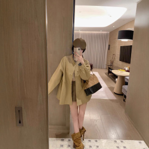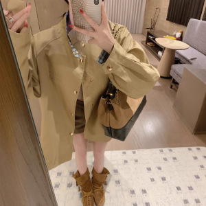 mm25秋冬新款韩系千金风蓝色格子宽松风衣外套