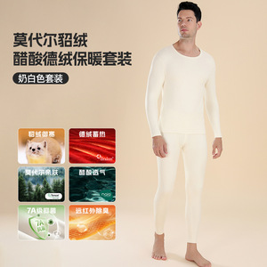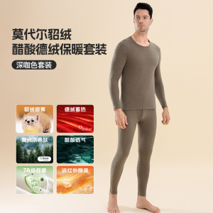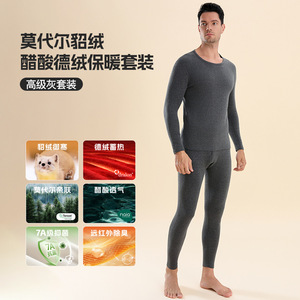 10A抑菌貂绒保暖内衣男秋冬季德绒发热双面磨毛无痕秋衣秋裤套装