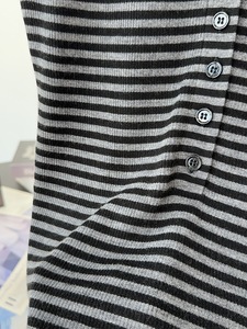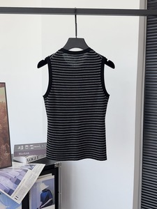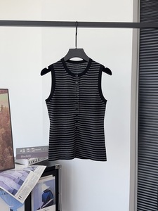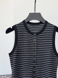 25早秋女士新品羊毛圆领条纹撞色纽扣修身休闲无袖针织衫背心上衣
